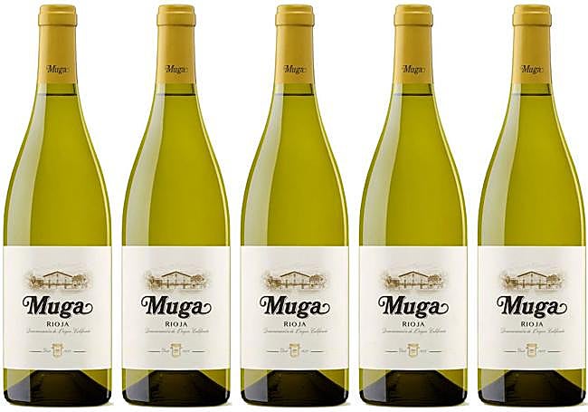 Viura, Garnacha blanca y Malvasía de Rioja. La añada 2022 de Muga Blanco presenta un bonito color amarillo pajizo. Permanece durante 4 meses en las barricas, realizando 2 battonagges por semana durante los primeros meses y uno diario en el último mes. En nariz se muestra como un vino complejo, donde aparecen notas cítricas, tales como limón, pastel de limón, aromas florales de fruta de hueso e, incluso, notas de vainilla. En boca, destaca por su acidez bien equilibrada. Estamos ante un vino potente donde vuelven las notas a cítricos, florales y de fruta de hueso con un final muy largo.