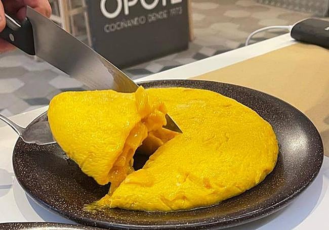 Este cocinero, con nueve años de experiencia, llega a preparar hasta 60 tortillas al día. Su receta está bien medida, pero siempre busca mejorarla, y su clave está en usar huevo fresco, concretamente el de Gallina de Mos desde 2017, batiéndolo hasta lograr una textura tipo mousse. Utiliza patata monalisa, ideal para fritura por su capacidad de absorber el huevo, que cocina en freidora con aceite de oliva suave durante siete minutos. Sin cebolla, al estilo Betanzos, mezcla la patata con el huevo, añade sal, y deja reposar cinco minutos antes de darle cuatro vueltas en la sartén para obtener una tortilla ligeramente líquida.