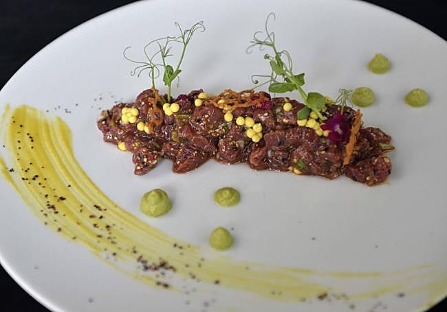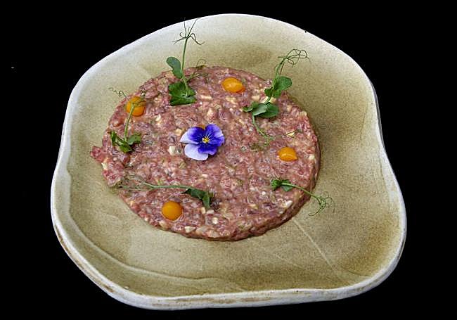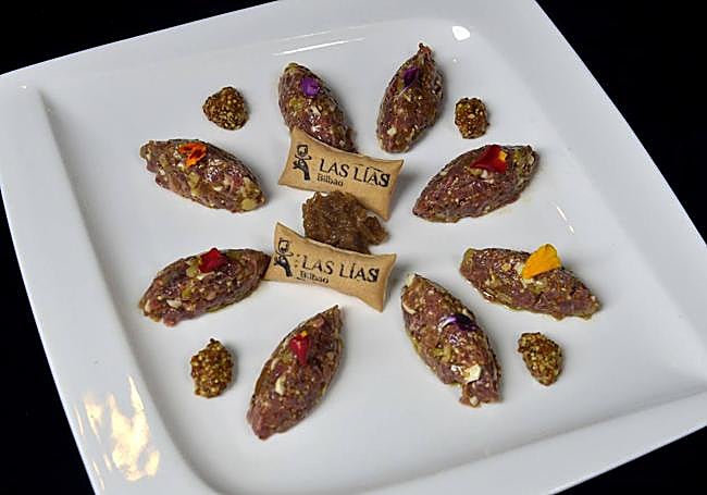 El único de la lista que mantiene vivo el ritual de preparar el steak tartar a la vista del cliente. Mikel García, heredero de la saga Zortziko, despliega en Las Lías un servicio de gran sala adaptado a un formato informal. Su tartar juega con los mismos ingredientes de la receta clásica, pero incorporando elaboraciones más amables para obtener un sabor más delicado. «El huevo cocido aporta textura, la cebolla está ligeramente caramelizada y la aceituna macerada en pimentón ayuda a contrarrestar el salazón y vinagre de la salsa Perrins», explica. Utiliza solomillo de frisona gallega «de primera calidad y quiero que el cliente pueda apreciar la materia prima». Propone maridarlo con jerez, con hidromiel o con vinos de crianza oxidativa.