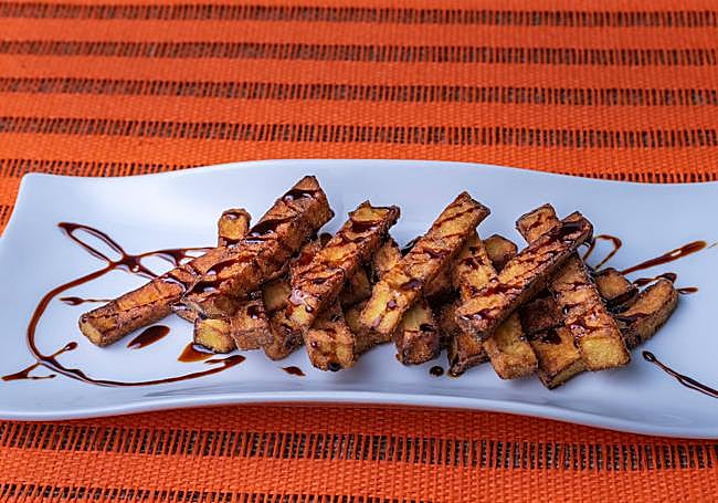 Tema delicado, éste. Hablamos de una auténtica exquisitez: berenjena, aceite de oliva y miel. ¿Dónde está el problema? En que, o se fríe bien, o la berenjena se convierte en una absorbedora de aceite, una bomba calórica que puede resultar muy indigesta. La clave está, una vez pelada y cortada, sea en forma de bastones o de rodajas, en 'bañarla' bien y dejarla sumergida al menos media hora en algún líquido que la 'impermeabilice', como leche y hielo, gaseosa, cerveza o, sencillamente, agua con gas. Y a la hora de 'emborrizar' con harina, que la capa sea finita.
