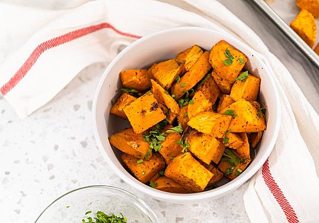 Primo lejano de la patata, el boniato se puede preparar frito en aceite de oliva, en rodajas o en forma de bastones, con su toque de sal y pimienta al gusto. Cuanto más fino se corte, más crujiente resulta. Sale riquísimo, pero ya no será tan bueno para la salud como si lo preparamos al horno. En este caso también se puede trocear como las patatas fritas y añadirle especias como la cúrcuma, el curry o el pimentón. Cocido con azúcar y canela resulta un postre estupendo y muy fácil de hacer, pero hay que redoblar el miramiento con las calorías.