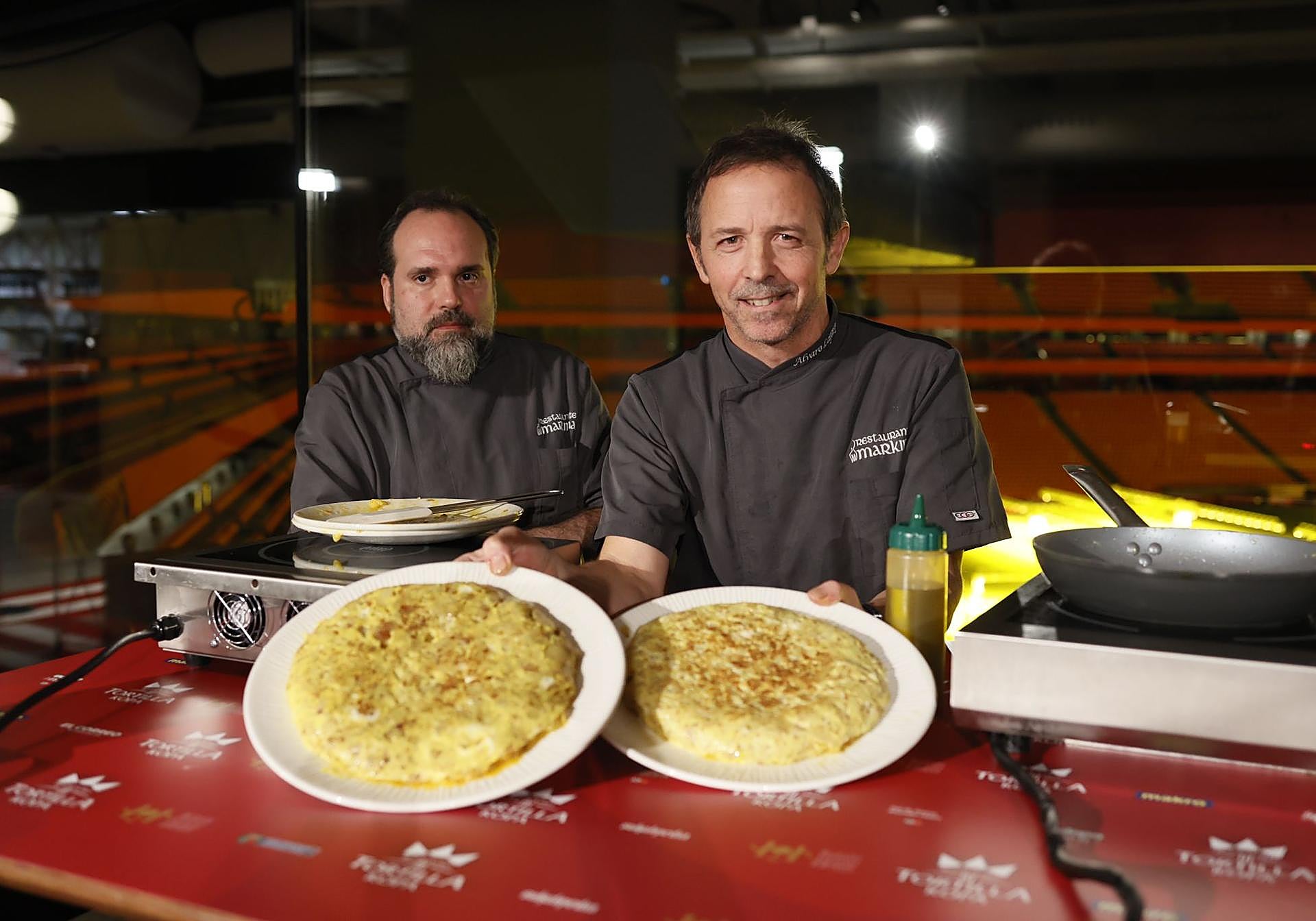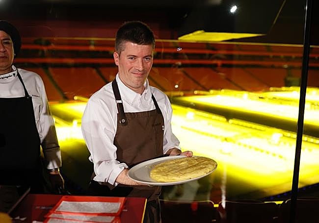 Todo influye, dice Iñaki Lazkano, que a la final se ha llevado hasta sus propiso platos para emplatar la tortilla. Una que se elabora con cebolla roja, patatas ágata y 12 huevos -echarle las dos yemas extra que tenía preparadas en San Mamés no siempre es necesario-; la fritura de la patata puede tardar hasta 50 minutos y, con el reposo en el huevo, el proceso puede dilatarse hasta la hora y veinte. Aceite de oliva virgen extra, eso sí. Y «engrasar y calentar muy bien la sartén» antes de echarle la mezcla.