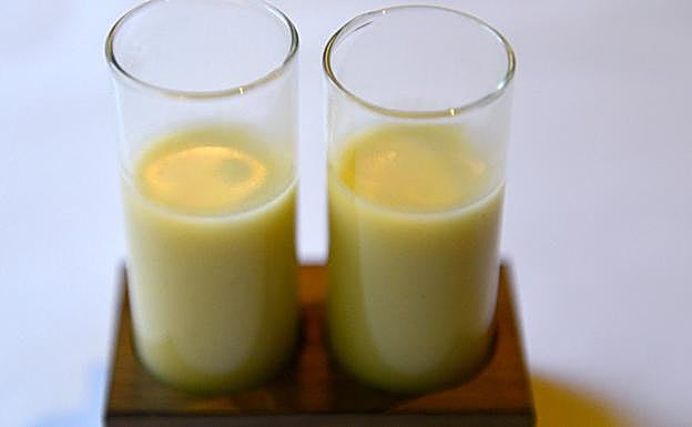 La vichyssoise es una crema de puerros con patata que en este caso lleva nata y caldo se ave. Se rehoga una cebolleta, se trocea el puerro y se le añaden la patata y el caldo.