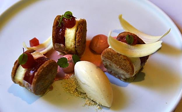 Dejen hueco para el postre, un cheescake de queso e higo con helado de vainilla, que elabora el maestro pastelero Víctor de Castro.