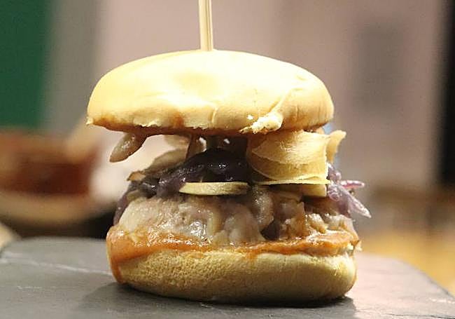 La 'Peppapig' es una hamburguesa de manitas de cerdo, pan de brioche, salsa Bizkaina y cebolla morada.