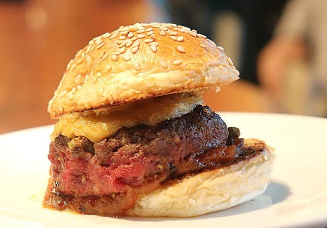 La 'Bilbao burger' lleva ternera, beicon caramelizado al txakoli y salsa de queso idiazabal.