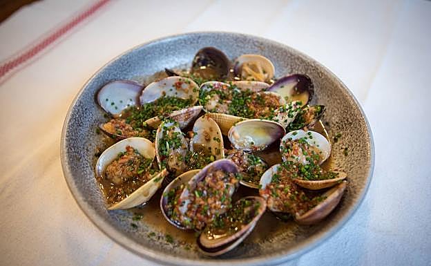 Receta de almejas con salsa de ajo y chile para Navidad de Iván Abril, cocinero del Restaurante Kimtxu (Bilbao)