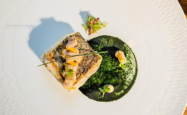 Receta de merluza, pilpil de algas, berberechos y codium par aNavidad de Luis Hernani del Restaurante Mano Lenta (Vitoria)