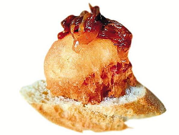 El huevo, una vez cocido, se corta por la mitad y se le quita la yema. Su interior se rellena con tomate natural cortado en brunoise y queso de cabra. Una vez relleno, se reboza en harina y huevo batido y se fríe con aceite de oliva bien caliente. Se presenta sobre una rodaja de pan. La parte superior del huevo se corona con cebolla, que se pocha hasta que adquiera un color dorado y se carameliza con azúcar.