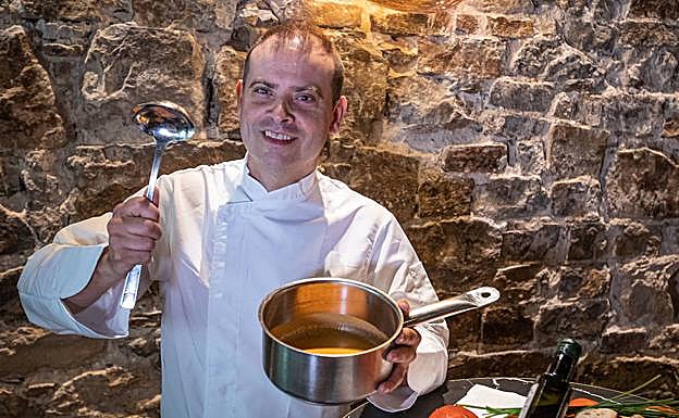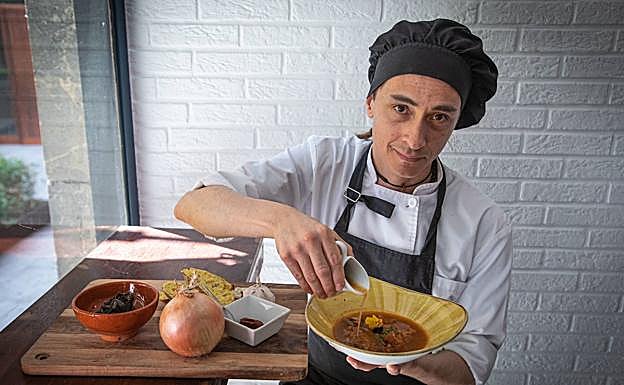 El chef uruguayo Nicolás Cabrera aprovecha el género de su huerta para proponer un salmorejo sencillo en apariencia, ya que ha sustituido el pan por calabacines. «Con ese lío del gluten decidimos sustituir el pan por la hortaliza, que le da a la sopa cremosidad y textura suave». Y todo porque el día que decidió elaborar el salmorejo se dio cuenta de que «no tenía pan del día anterior». El calabacín va pelado, de forma que pierde el amargor de la cáscara. «Habrá que acostumbrarse a las sopas frías, aunque por mucho calor que haya, sigo vendiendo chuletas a la brasa. Y en verano es cuando más sopa castellana vendo, aunque haya 40 grados».