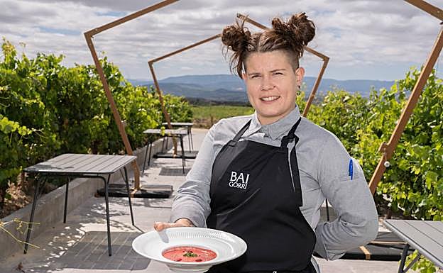 La cocinera del restaurante situado en la bodega de Rioja Alavesa, la uruguaya Maite Barruti, se decidió a elaborar esta sopa fría en un momento que tenían mucha remolacha en la huerta. «Queríamos aprovecharla y añadir una fruta ácida. Los ingredientes combinan muy bien». Un plato que, asegura gusta mucho, sobre todo entre los extranjeros, «que incluso nos pedían la receta».