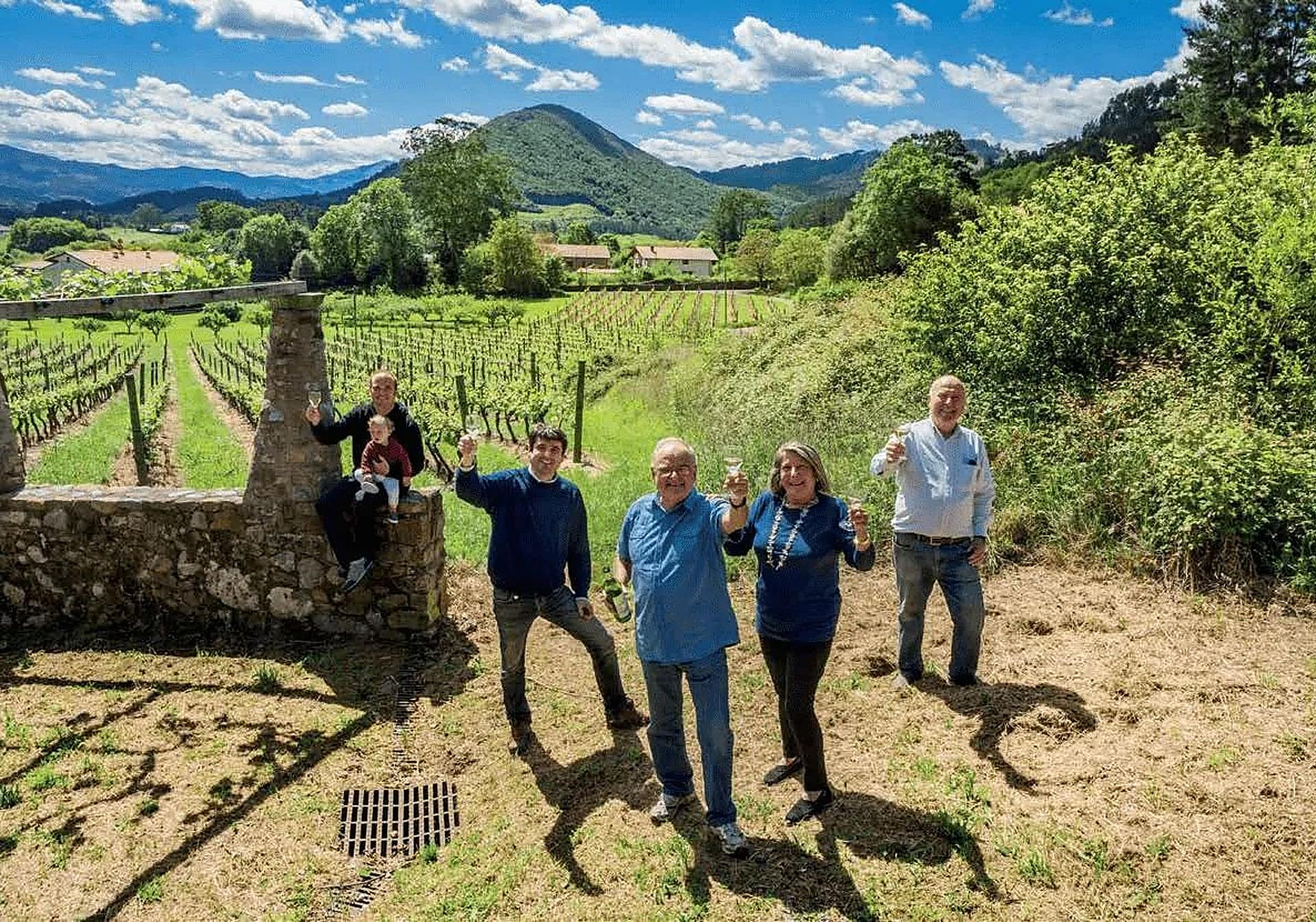 Un equipo que, sin tener una tradición familiar, se involucró de lleno en la recuperación vitivinícola de Bakio en un momento de abandono masivo de los viñedos en la zona. Hoy en día cuenta con 15 hectáreas de viñedo en producción en las laderas orientadas al mediodía del valle de Bakio en un rango de altitud que oscila entre los 0 y 250 metros.