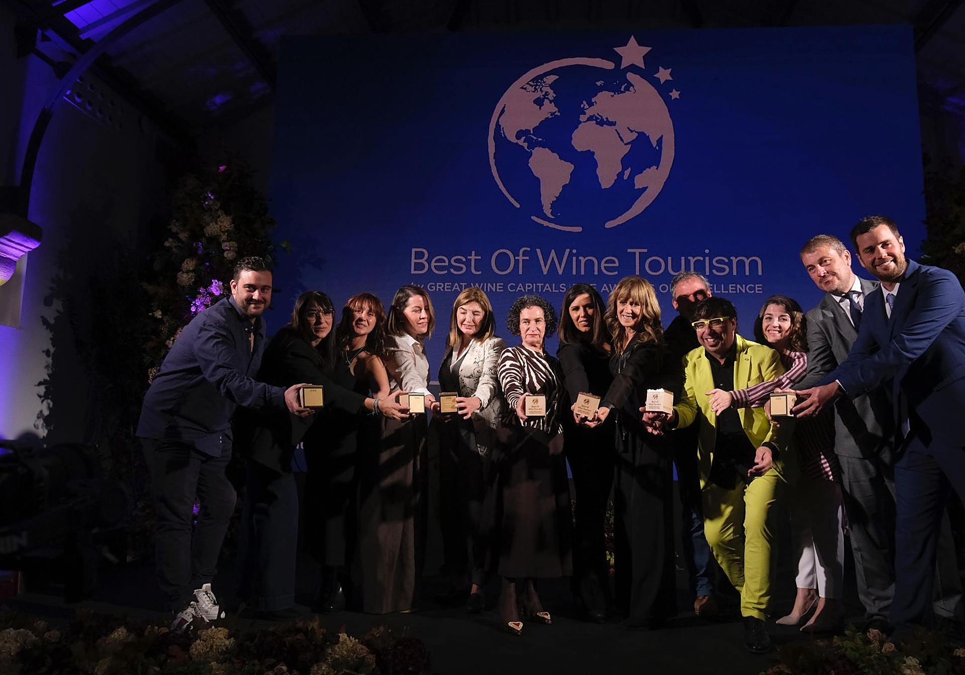 En la ceremonia de esta edición de los Premios Best Of Wine Tourism, que ha contado con la colaboración del Gobierno de La Rioja, se han otorgado siete reconocimientos. Las otras cinco propuestas premiadas han sido: Bodegas Faustino, en la categoría Arquitectura, Parques y Jardines; el Hotel Viura de Rioja Alavesa y su experiencia 'En busca de la Gran Belleza', en Arte y Cultura; Palacios, vinos de Finca de Nalda, sus bodegas Nivarius y Proelio y su nuevo Wine Bar, en Prácticas sostenibles de enoturismo; Hospedería Los Parajes de Laguardia y especialmente para su propietaria Chari García Ugarte por su trayectoria profesional, en la categoría Alojamiento; y Bodegas Ramón Bilbao de Haro, en Experiencia innovadora en enoturismo.