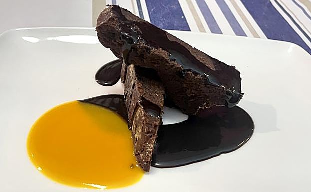 La ensalada se presenta en un pequeño bol con daditos de manzana, nueces y un excitante aliño de mostaza. El pollo resulta una golosina, crujiente pero untuoso, salpicado de unas semillitas de sésamo. Se come con gusto y aún queda espacio para probar el brownie, al que le hubiera sentado de cine un breve calentón para llegar a la mesa más blandito, pero supongo que el servicio da lo que da.