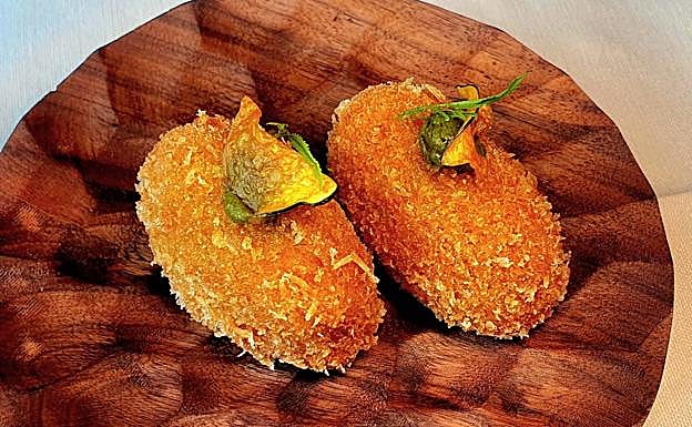 En el Aixerrota han comenzado su andadura con una carta pequeña para el comedor –en breve ampliarán las propuestas gastronómicas, en las que introducirán platos de la cocina autóctona– basada fundamentalmente en la cocina peruana. Dispone de otra de picoteo con bocados o raciones en la que sobresalen las croquetas de chupe de carabineros, que están deliciosas, muy cremosas en su interior y de un sabor intenso, que se acompañan con salsa de ocopa y loche frito. También tienen platos como viera pinzu, bao de atún rojo o tortilla trufada.