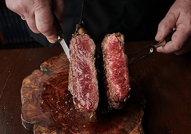 «Los filetes finos quedan bien en Instagram, pero se enfrían rápido. Y, si, por lo que sea, tienes que calentar las lascas, se pasan. Por eso mi padre, que atendía las mesas de los industriales de las fábricas y talleres de Tolosa que se reunían aquí para hablar de sus negocios, apreció los distintos músculos y decidió sacar tajadas más gruesas, para que pudieran tomarlas siempre calientes», me explica Xabi, que estudió Cocina en Cebanc e hizo prácticas en El Frontón con Roberto Ruiz, Martín Berasategui (Pastelería) y El Celler de Can Roca.