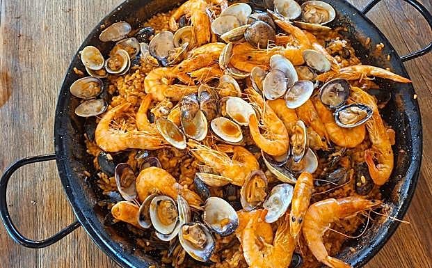 Muchos acuden por los cachopos, bien el tradicional con jamón ibérico y queso Emmental, bien el especial que llevajamón ibérico, queso cheddar, bacon y salsa barbacoa. Ofrecen paellas: mixta, de carne, negra o de marisco, que están estupenda. Y pescados, piezas grandes –lubina o rodaballo, depende de lo que haya en el mercado– que ponen al horno con la clásica prevé cántabra. Como postre, tarta de queso, torrija de pan brioche o tiramisú casero.