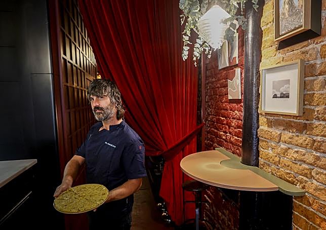 Ahora que el local se pone estupendo para subirse al carro del tardeo, Igor Mombiela no tiene reparos en reconocer que «la tortilla es lo que nos ha dado de comer todos estos años». Y no es una metáfora. Su receta no tiene demasiado misterio, pero sí mucho oficio: buena mano con la sartén –«he hecho miles en esta cocina y ya me salen con los ojos cerrados»–, aceite de oliva virgen extra, huevos camperos y patata francesa. Hoy se llevan con más huevos y menos consistencia, estilo Betanzos, pero él prefiere mantener el equilibrio: la patata bien frita, el huevo justo, y si acaso alguna yema extra para aportar jugosidad. Por algo lleva más de una década ocupando un lugar incontestable entre las mejores de la villa.