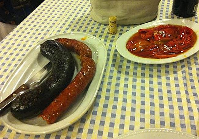 Son muy celebradas sus bandejas de morcilla y chorizo guarnecidas con rabaneras de pimientos rojos asados, mondos y guisados con ajos. La peña pierde la dignidad chapoteando con pan ese juguillo dorado y espeso que sueltan. Gran remate son las fantásticas fuentes de chuletillas de corderito lechal asadas al sarmiento, que se comen como pipas. Algunos las prefieren de palo y otros las de carne, churruscadas, porque se papean de un bocado. Para gustos los colores.