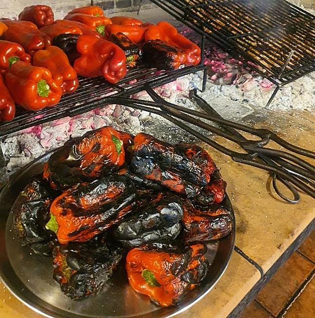 El Pimiento es una casa engrasada a fuerza de curro, desvelos y de haber andado al quite y atentos a las necesidades de sus clientes, verdaderos reyes del mambo de toda esta mandanga. El lugar es una vieja bodega con los elementos necesarios para triunfar, pues poseen buena barra en la que discuten los lugareños, fogón y una gran chimenea con su parrilla que es el reclamo que pone aquello hasta la bandera junto a un comedor y una preciosa terraza abierta o abrigada, según apriete o afloje Lorenzo. Peña de toda condición corre a sentarse allá, anudándose la servilleta mientras ven divertirse a la jefa y a todo su equipo, que tienen siempre una sonrisa y se desviven para que todo dios esté más feliz que una perdiz.