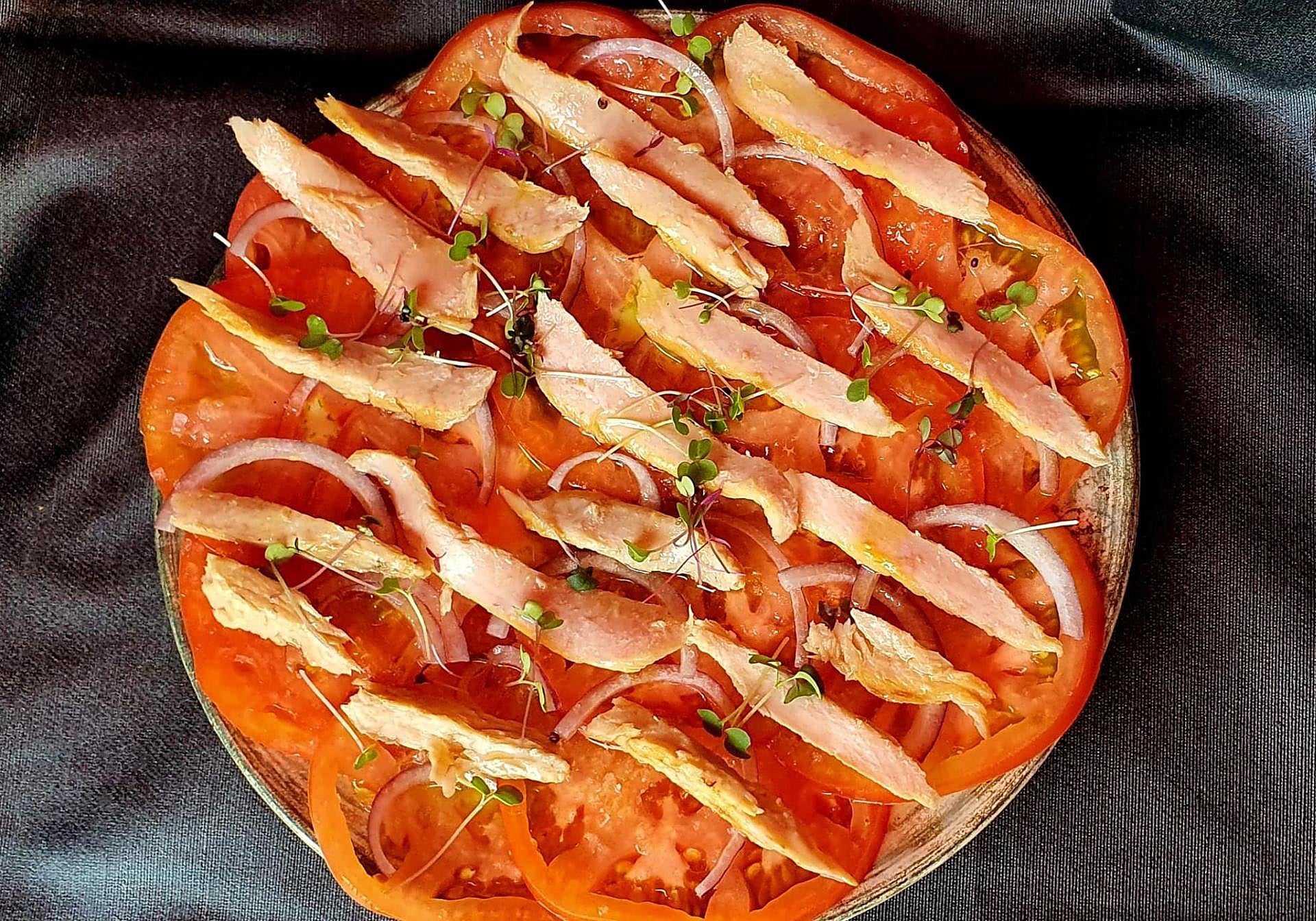 Javi es un excelente cocinero. Ha diseñado una carta informal en la que destacan platos como vieras del Pacífico con ajo y perejil, gambones a la plancha con salsa coreana, huevos fritos con jamón ibérico y patatas, croquetas de jamón ibérico, que compra en la charcutería de los hermanos Alegría, en la Ribera de Plentzia. También, tartar de atún, yema de huevo, botones de mahonesa de chipotle y kaisou, rabanito y hebras de Chile; cecina de León con lascas de Idiazabal ahumado; arroz meloso de boletus y crujiente de Idiazabal y ensalada de tomate de Goierri, cebolleta y ventresca de atún; y cualquiera de sus burger, de ternera de Eusko Label, con pan de cristal o de brioche.