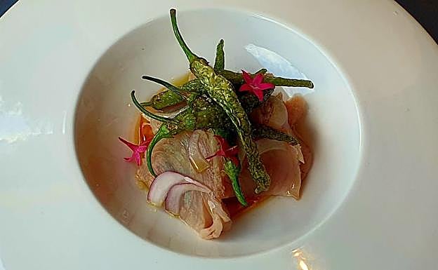 La fiesta gastronómica puede comenzar con un aperitivo de intenso sabor: crema de marmitako. Se puede disfrutar de una ensalada de bonito fresco –que confita a baja temperatura– con pimientos rojos asados, piparras, cebolleta y tomates, todo ello bañado en aceite de oliva y una auténtica delicatessen. También de los pimientos rojos de 'Apurtuarte', confitados en aceite y ajo y asados, que resultan muy sedosos y de sabor intenso. Buenas opciones para proseguir con el festín son las gambas rojas del Mediterráneo a la brasa o el chipirón de potera del Abra puesto, cuya carne está tersa y sabrosa, y que se acompaña de vainas de Getxo al dente.