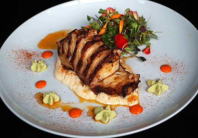 En el restaurante Akebaso ofrecen diferentes menús y carta y se come magníficamente. El festín puede comenzar con unas cremosas croquetas de txistorra que recuerdan a las que hacía Salva en La Terraza de Algorta. También alcachofas a la brasa con perlas de trufa o tataki de salmón, cortado en lonchas muy finas marinado en remolacha y vodka, con huevas de trucha, puré de guacamole y sal de aceituna negra. O ensalada de pulpo a la brasa, patata rota con arbequina y alioli de miel, donde el pulpo tiene el punto perfecto. Para continuar, mollejas de cordero fritas, con el punto crujiente adecuado, acompañadas de boletus confitados o caracoles en una gustosa vizcaína con jamón, chorizo y huevo cocido.