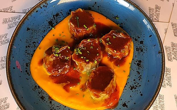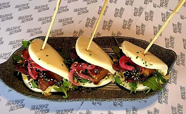 Una buena elección para comenzar es su tartar de salmón marinado con sake y mirin, sésamo, guacamole, wakame, tobiko y mahonesa de mango. O chips de berenjenas con miel de caña. Las láminas de pulpo crujientes se acompañan de mahonesa de pimentón. Para continuar, bao de panceta o de pollo guisado al curry amarillo y leche de coco con cebolla encurtida; ceviche roll; wagyu roll; dim-sum de rabo guisado y deshuesado sobre puré de boniato y reducción de su jugo o gyozas fritas de langostino y atún.