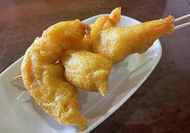 En ese marco que puede parecer poco tentador, destaca una pequeña vitrina en el centro de la barra que irremediablemente atrae la atención. Nada sofisticado, no se vayan a pensar, bocadillitos variados, corpulentas tortillas y de cuando en cuando, algún capricho. Hoy, unas banderillas de langostinos en tempura ensartadas en unas botellitas de cristal. Todo el mundo se conoce, ya les aviso que resulta difícil pasar inadvertido. Si no es usted de 'Otxar', enseguida se darán cuenta.