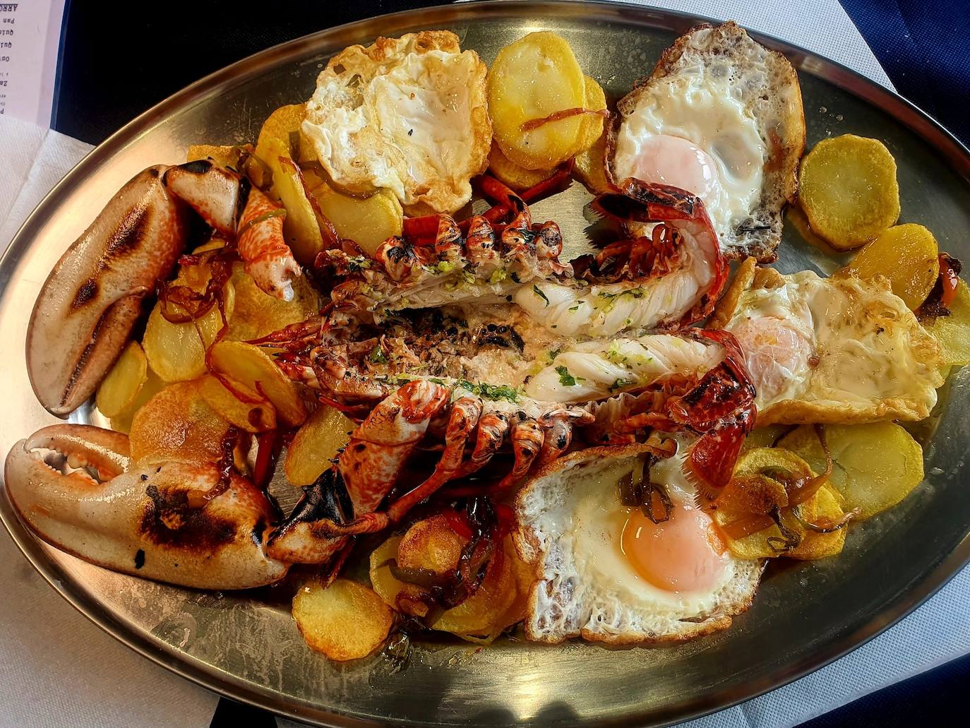 Se puede continuar con unos txipis a la plancha rellenos de txangurro y con cebolla pochada o cualquiera de sus mariscos –cocidos o a la plancha– o pescados, piezas grandes, para compartir. Un plato sorprendente es el bogavante a la plancha con huevos fritos y patatas fritas. Previo encargo preparan todo tipo de arroces, desde el arroz negro al arroz con bogavante. Si algún carnívoro acude a este establecimiento especializado en mariscos y pescados no se quedará con hambre ya que también cuentan con la opción de un entrecot o un solomillo premium de vaca. Y de postre, tarta de queso. En su carta de vinos predominan los albariños, ribeiros y txakolis.