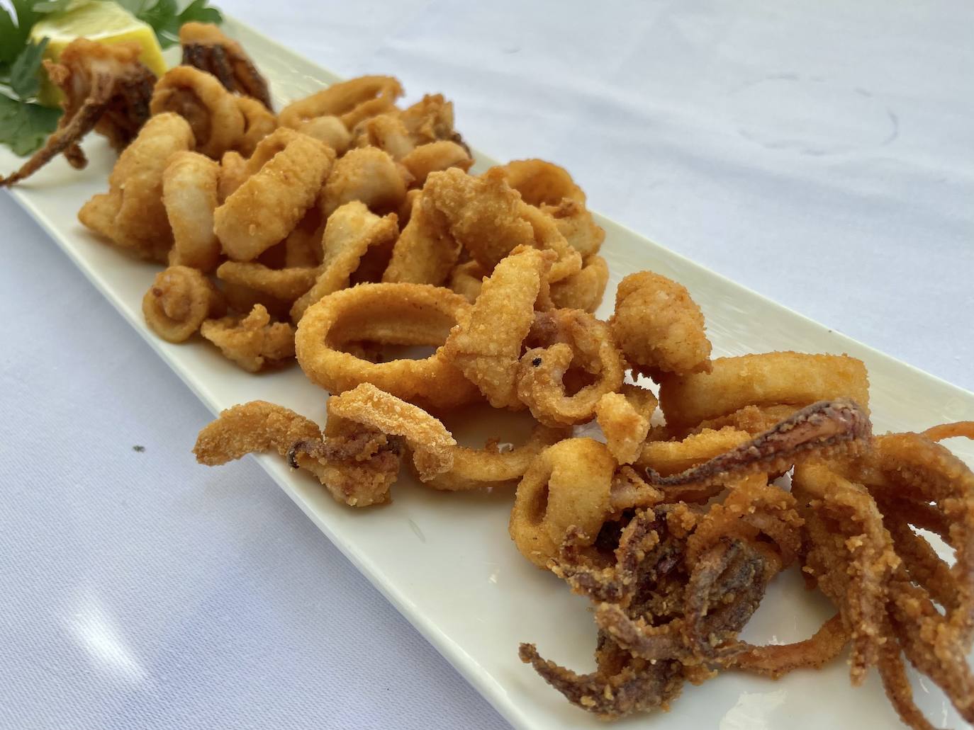 Precios: Ensalada de burrata: 17 €. Rabas de chipirón: 14 €. Arroces: 12 - 20 € /persona
