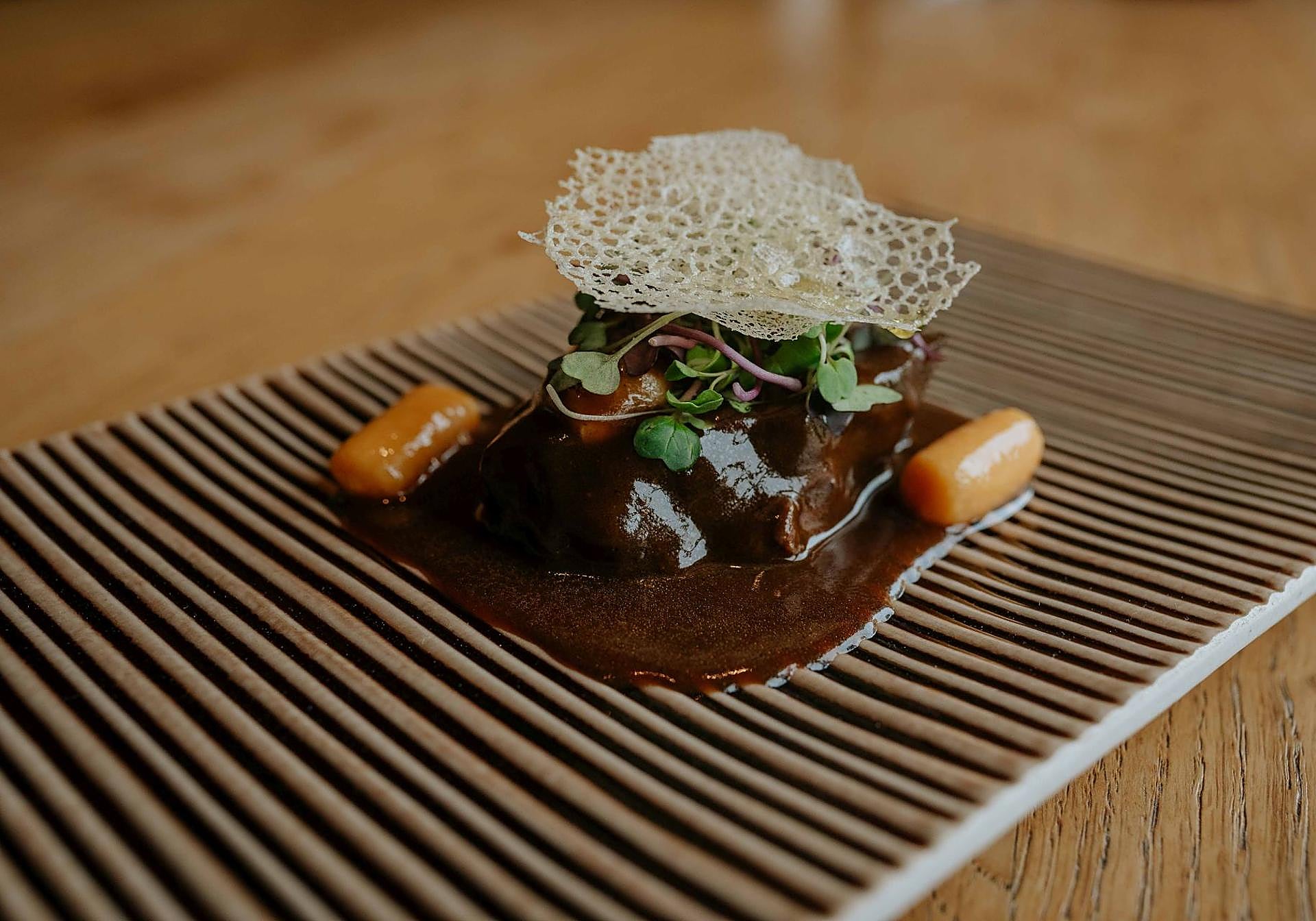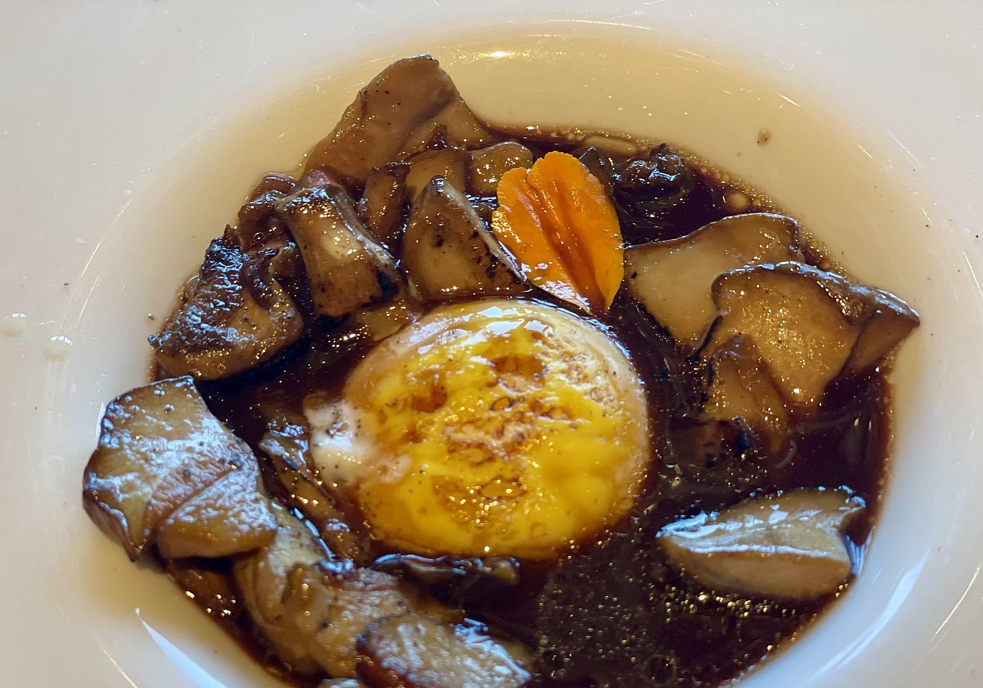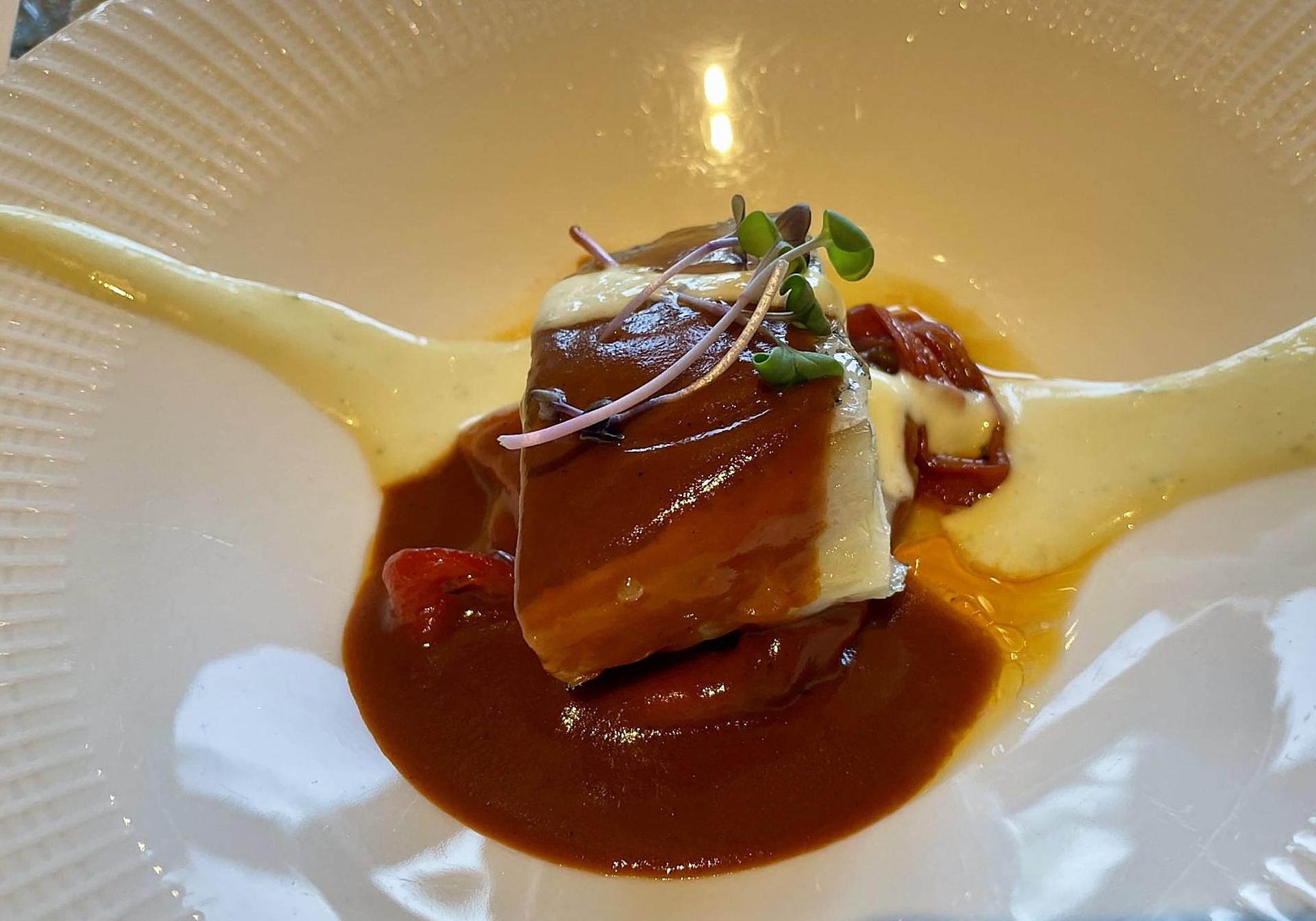 La cocina que practica Iraide Somarriba en el Regi de Urduliz ha experimentado una profunda y muy agradable transformación desde nuestra anterior visita, pocos días después de su apertura en julio de 2019. Con el comedor siempre lleno, Somarriba ha sido capaz de ir afinando los puntos del género de primera que maneja (muy notable la textura y manjarosidad del terso bacalao gourmet Brigitte de Islandia; excelente nivel en la presentación saignant del lomo de ciervo que le proporciona Antonio de Miguel; remarcable la finura del ravioli que envuelve los chipirones estofados de Armintza de Goyo el pescatero) al tiempo que ha afinado y aligerado las salsas que acompañan y visten de gala sus presentaciones. Tanto el consomé de rabo de los boletus como la salsa vizcaína del bacalao, el pilpil de la kokotxa de merluza o el puré de castañas del ciervo macerado al vino (Contador) son de notable factura, ligeras aún siendo muy gustosas, alinéandose con la dietética de los nuevos tiempos.