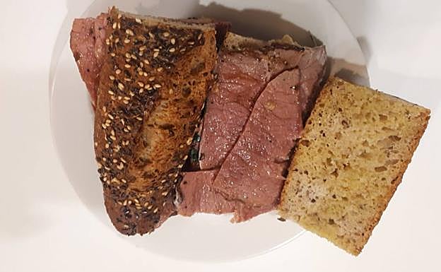 En Las Fiambrera de Algorta hacen un bocadillo de pastrami, que está para chuparse los dedos, y en breve van a hacer la versión rosbif. Noelia, la cocinera, afirma que un buen bocadillo no debe tener más de tres elementos. En el interior de un pan de cereales y semillas se pone rúcula, ternera curada y una salsa elaborada con mahonesa, mostaza, un poco de jugo de carne y parmesano. A la hora de sacarlo, para que el pan quede tostado, se le da un golpe de calor. Los puristas que deseen la versión original de Nueva York podrán disfrutar este bocadillo con un pepinillo encurtido.