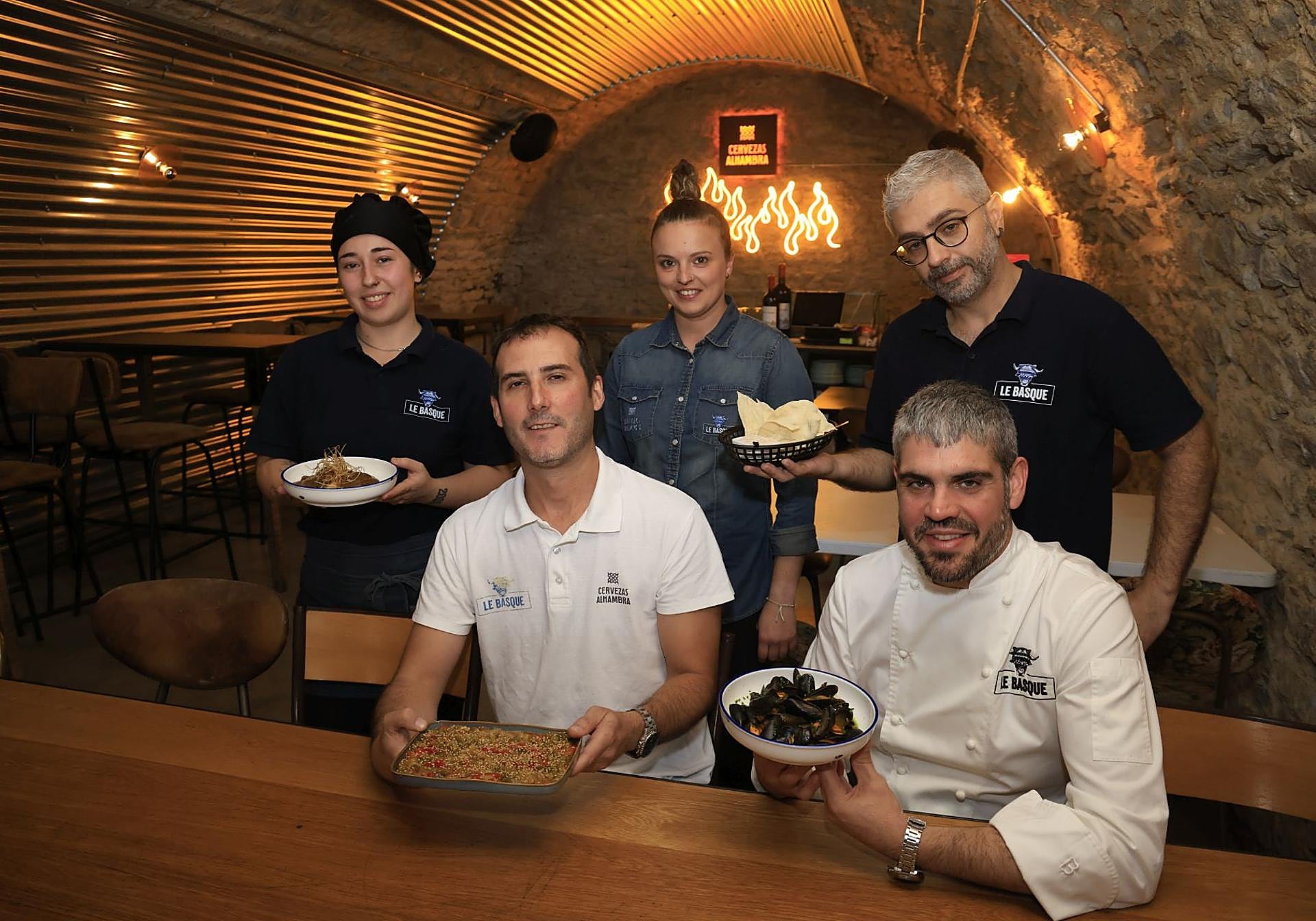 En Le Basque se rinde homenaje a las costumbres y su reflejo natural: la gastronomía y todo lo que la rodea. «Alrededor de una buena mesa o frente a una barra bien surtida de pintxos celebramos viejas y nuevas complicidades. Y Le Basque actualiza esa gran tradición con un toque moderno y desenfadado». Echevarría manda en la cocina, que ha sido premiada con un Solete de la Guía Repsol. Después de estudiar en la Escuela de Cocina de Mendizorroza, trabajó durante varios años con reconocidos chefs en Barcelona.