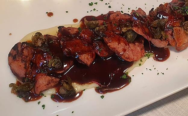 Las mollejas de ternera a la parrilla glaseadas con demi-glace y alcaparras fritas, con una base de parmentier de patata, resulta una exquisitez. Otras opciones son la chuleta de vaca madurada con patatas fritas y piquillos o la hamburguesa de buey Él Capricho a la parrilla en pan brioche. No dejen de probar el sapito a la brasa con refrito de ajos y guindilla. Fuera de carta suelen tener rodaballo o besugo. Disfruten con el postre: flor de manzana asada con helado de nata; piña a la parrilla, helado de coco e infusión de lima menta y jengibre; tarta de queso, que la tienen con pistachos y sin ellos. Cuentan con unos vinos mágnificos y las cavas están a la vista de los clientes.