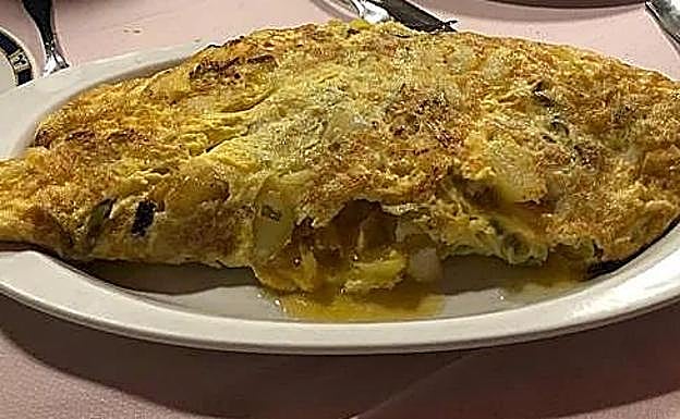 El plato cumbre es su majestad la tortilla de patata, que como todos saben es oblonga, figura geométrica más larga que ancha que describe perfectamente la forma de esa maravillosa patata pochada con cebolletas y pimientos verdes revueltos con huevos a medio batir, cuajada en sartén de hierro y servida en bandeja de fina porcelana. La tortilla de patata primitiva sería doblada como la del Kasino, como hay un dios. Luego zarpó Noé con sus bestias en el arca y al regresar, belcebú se encargó de que las tortillas fueran redondas, les daban vuelta al aire o con un plato, ¡qué vulgaridad!