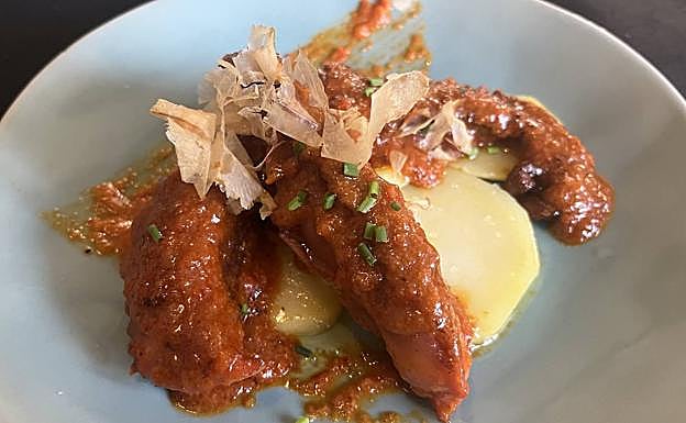 La versatilidad con la que mezclan ingredientes, condimentos y elaboraciones de aquí y de allá alumbra un restaurante único, donde la fusión no responde a las tendencias en boga, sino a la peripecia vital de la pareja. Así se explican felices ideas como elaborar el típico almogrote canario con Idiazabal de Keixara, o servir los puerros de su huerta con romescu, o estofar la ternera local a la milanesa, con esa gremolata de notas cítricas, tan alejada de la contundencia del guisote patrio.