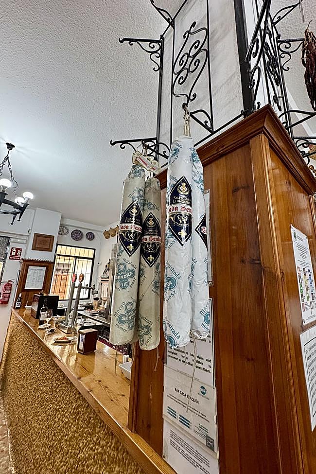 La danza de Joaquín por el local es posible gracias a la complicidad de Antonio, que desde la barra le echa un cable con el cañero, disponiendo algunas raciones y atendiendo a los seleccionados clientes que prefieren comer de pie porque llevan prisa o disfrutan más pispando todo lo que se menea en el comedor y en unas cámaras y ganchos que exhiben golosinas sepultadas en hielo o chacina colgandera, jamones Carrasco de muchos quilates y muchas arrobas, salchichones de Vic o sobrasadas gordas como melones, envueltas en celofán carmesí.