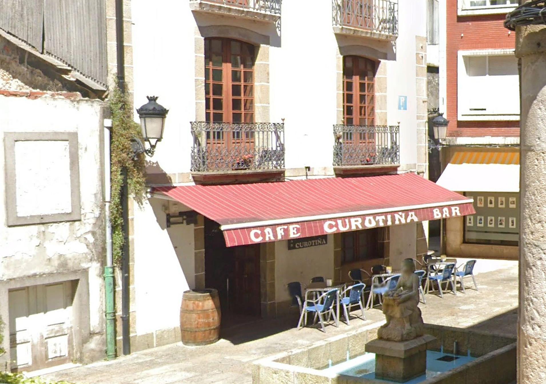 Y en ese ir y venir de gente en chanclas, repartidores, vecinas, buhoneros, turistas, marineros y críos chapoteando en las fuentes, está Berta en su Curotiña, que es una tasca de pueblo que pasa desapercibida, sin aparente gracia ni salero. Escondida en una pequeña plazuela junto a la carretera que lleva a Palmeira, enseña la patita con los típicos destellos de lugar casta y auténtico, sin memeces: cajas apiladas de refrescos, periódicos viejos sobre la barra, vitrinas expositoras con tres bollos resecos, suelo hidráulico, mesas gastadas de madera y parroquianos desperdigados acá y acullá que acuden puntuales a su cita con su café con chupito de orujo, su vermú con aceituna o su vino pelón, mientras afinan el oído para trincar el parte diario.