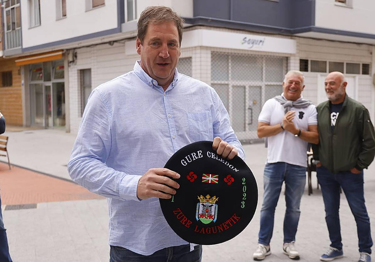 Ha sido un momento especial, pensado por sus más cercanos desde hace dos años, que sirve de homenaje a un hombre que ha dedicado 23 4 de agosto de su vida a encarnar al festivo blusa de Zalduondo. Ortiz de Urbina es, como dicen sus amigos, el Celedón de varias generaciones, o como reza la txapela que le han regalado, Gure Celedón.