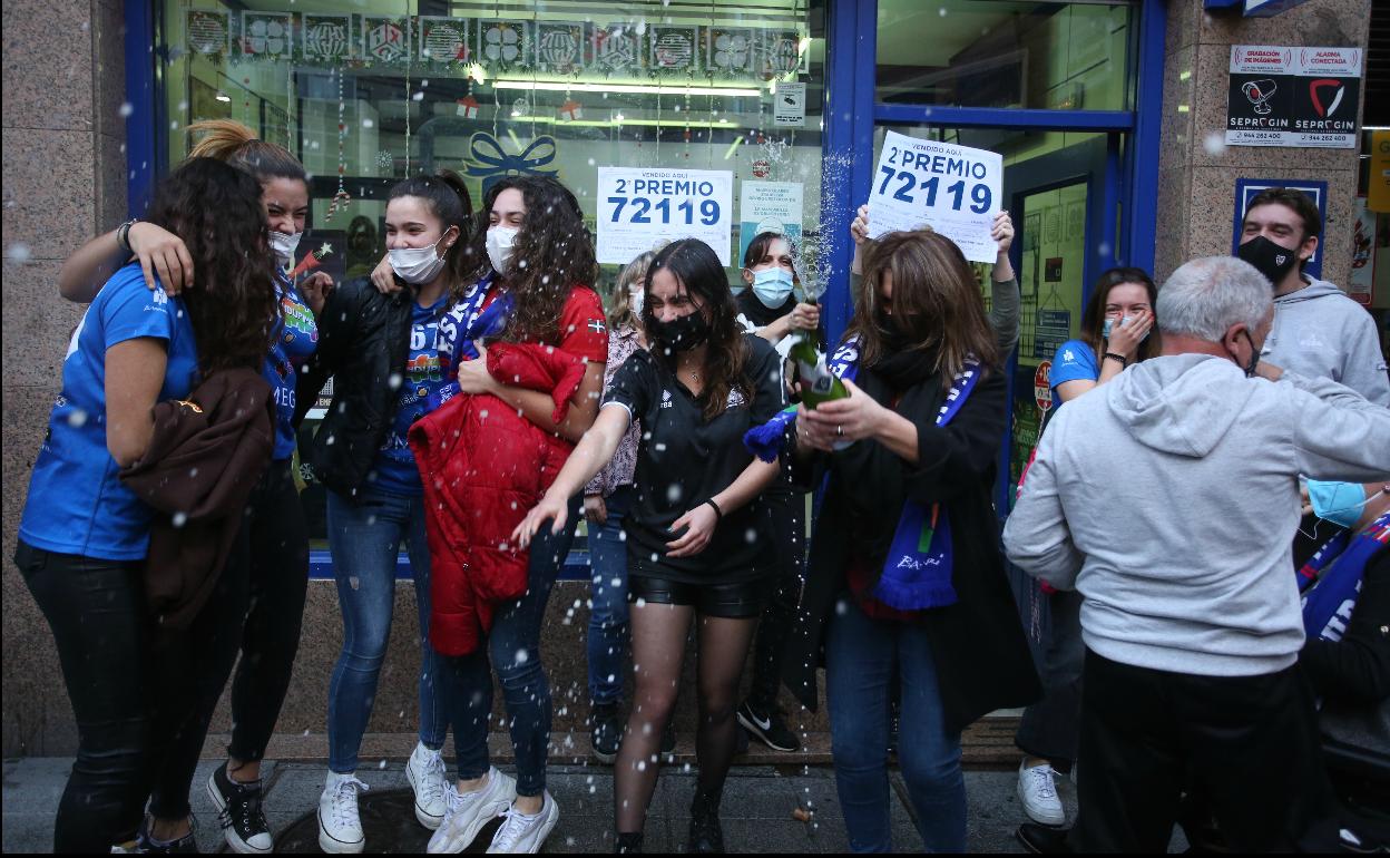 Mari José Berzosa es la propietaria de la administración. Esta mañana lloraba de emoción. Como el resto de loteros había decidido secundar la huelga, pero se ha visto obligada a levantar la persiana «solo para celebrar el premio». «Siempre hace ilusión, pero este año más. Solo es mejor que dar un premio que se acabe esto de la pandemia», ha explicado a EL CORREO.