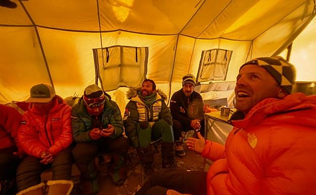 Tampoco ayudan, aunque nadie se queja, los platos que prepara aquí arriba Eneko Garamendi, el cocinero de la expedición. Alubias con sus sacramentos, cocido de lentejas… Exquisiteces que saben a gloria a casi 5.000 metros de altura -alguno las ha llegado a desayunar- pero potencian la generación de gases estomacales que inevitablemente acaban invadiendo el tenue aire del campo base.