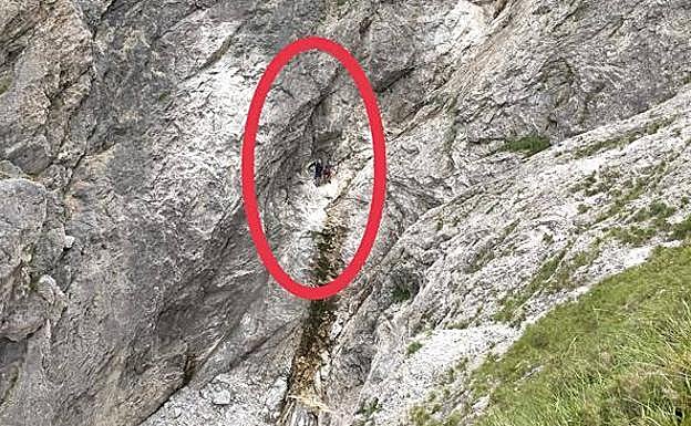 Estuvieron más de 48 horas desaparecidos. Desde algo antes de las dos de la tarde del pasado domingo, hasta las dos de este martes. Aislados en un risco en Picos de Europa, a 1.600 metros de altura, sin cobertura en el móvil, sin comida y llenos de frustración, porque sobre el lugar donde quedaron atrapados, en un saliente de la canal de Ría, cruzó sus cabezas más de treinta veces el helicóptero que los buscaba, pero no los vio. «Decidimos no movernos y es lo que nos ha salvado. Pudo haber salido mal. Pensábamos que de esta noche no pasábamos, sobre todo por el frío, porque podíamos morir de hipotermia. Era un sufrimiento bestial, nos mirábamos y no nos hablábamos. Ya con la mirada nos decíamos todo, lo veíamos muy crudo», confesaron Ramón González y José Antonio García cuando tras ser rescatados se abrazaron a los suyos ya de vuelta a Poncebos. El lugar donde el domingo comenzó esta historia que gracias a la prudencia y la suerte ha terminado con final feliz.