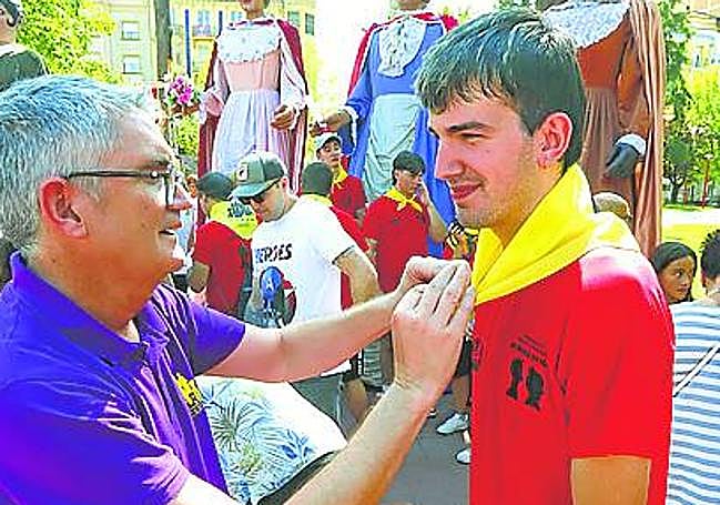 Los que llegaban de Logroño estaban como en casa pues no en vano son la comparsa habitual desde hace ya muchos años. La buena sintonía que existe entre esa agrupación y la mirandesa fue la que sirvió para que una vez que se realizó la exhibición de los bailes de todos los gigantes que participaron en el encuentro, se realizara el hermanamiento entre las dos comparsas. Los riojanos impusieron los pañuelos a los mirandeses. Fue para los anfitriones una agradable sorpresa.