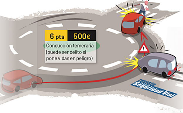 La Dirección General de Tráfico tiene la mira puesta en las rotondas. Es uno de los lugares donde más infracciones se comete, y por ende, donde más accidentes se dan. Tráfico pide seguir las normas, que son varias, y recuerda que las multas al no hacerlos son muy severas: van desde los 200 euros hasta los 500, y pueden suponer hasta seis puntos menos en el carné de conducir.