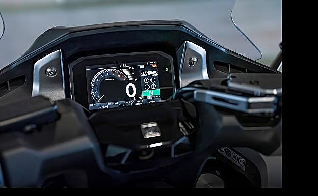 A primera vista destaca por unas líneas modernas, con marcados volúmenes que prometen gran protección contra el viento a alta velocidad, gracias a una estudiada pantalla que carece de regulación, y amplio espacio para las piernas del conductor. Bajo el asiento podremos guardar un casco integral y cargar el móvil en una toma USB. Además dispone de una pequeña guantera en el escudo delantero. Gracias a un estrecho asiento podemos apoyar fácilmente los dos pies en el suelo, quedando frente a nosotros una bonita y completa pantalla de instrumentos TFT de 5«, que incorpora el Honda Smartphone Voice Control System, comunicando al conductor con su smartphone. El encendido, el bloqueo y la apertura del asiento y tapa del depósito de gasolina son mediante Smart Key.