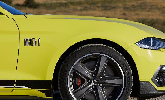 Las ocho atrevidas combinaciones del color de la carrocería y de las franjas laterales y del capó incluyen el Fighter Jet Grey con franjas Satin Black/Reflective Orange -que también añade pinzas de freno naranjas- y el Grabber Yellow con franjas Satin Black/White, mientras que los logotipos Mach 1 aparecen en la tapa del maletero trasero y en las aletas delanteras independientemente del color elegido. El sistema de escape activo Active Valve Performance ajustado a medida del Mustang Mach 1 cuenta con cuatro puntas cromadas de 4,5 pulgadas que le confieren un aspecto inconfundible, además de un sonido único.
