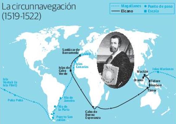 La gloria no le estaba destinada a un vasco, sino a un portugués. En 1519, Fernando de Magallanes recibió la bendición de Carlos V para abrir una nueva ruta comercial a las islas de las especias, más valiosas que el oro en la época. Salieron de Sanlúcar de Barrameda cinco naves con 234 hombres rumbo al Oeste y regresaron, tres años después, 18 espectros a bordo de la nao 'Victoria' comandados por un guipuzcoano. Juan Sebastián Elcano mereció del emperador un escudo con una esfera terrestre y la leyenda 'Primus circumdedisti me' (el primero me circundaste).