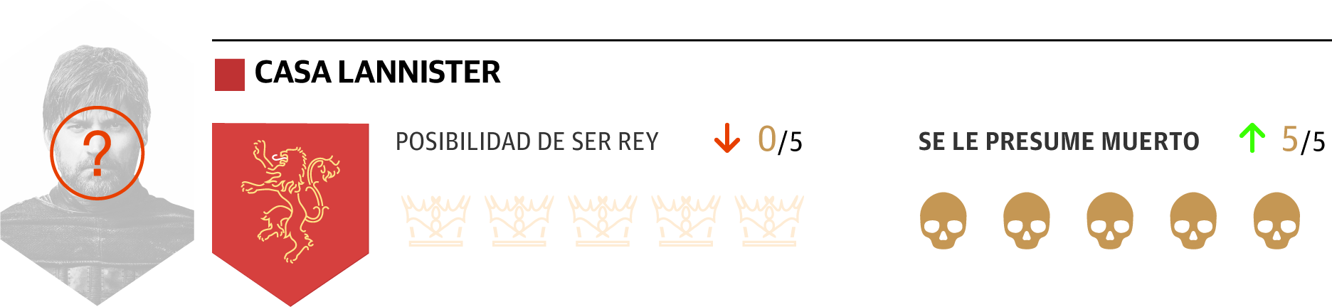1. Es un secundario y le gusta ese papel. Cree que el verdadero rey ha de ser Jon Snow. Se ha retirado para vivir en tranquilidad con su familia.