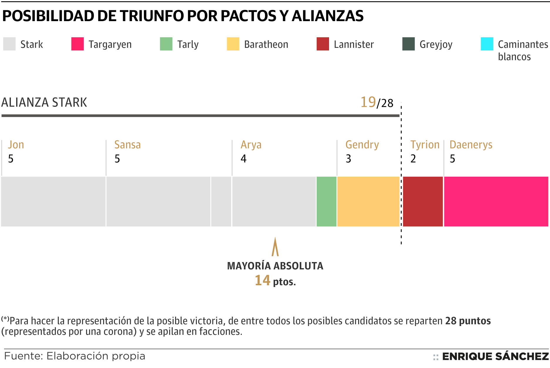 Porcentaje de probabilidad de que cada Casa ocupe el Trono Enrique Sánchez